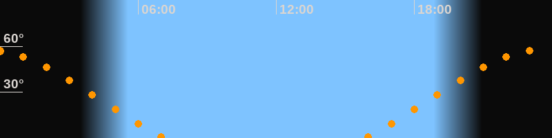| Untergang | 07:09 Uhr im Nordwesten (αAz = 300,4°) |