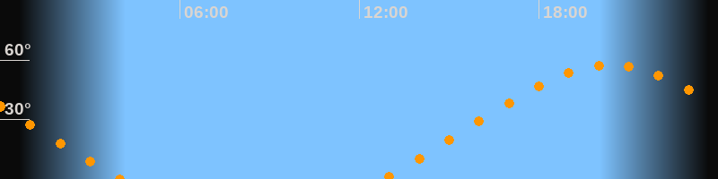 | Aufgang | 12:45 Uhr im Nordosten (αAz = 59,6°) |