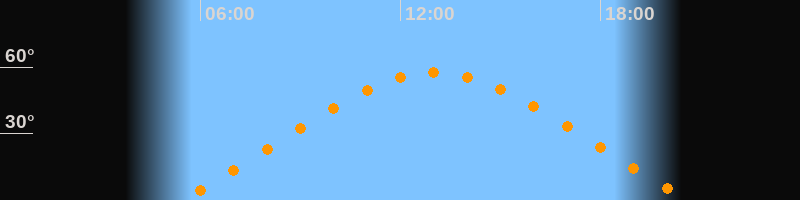 | Höchster Stand (Kulmination) | 13:02 Uhr (h = 57,5°) |