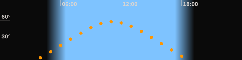 | Höchster Stand (Kulmination) | 11:08 Uhr (h = 57,5°) |