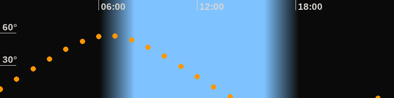 | Höchster Stand (Kulmination) | 06:37 Uhr (h = 57,5°) |