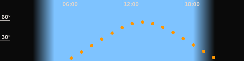 | Höchster Stand (Kulmination) | 14:02 Uhr (h = 57,5°) |