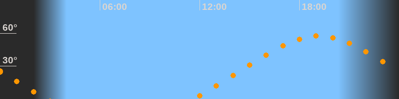 | Höchster Stand (Kulmination) | 19:10 Uhr (h = 57,5°) |