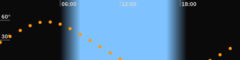 | Untergang | 12:18 Uhr im Nordwesten (αAz = 300,4°) |