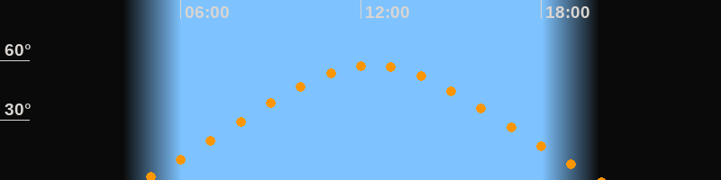 | Höchster Stand (Kulmination) | 12:21 Uhr (h = 57,5°) |