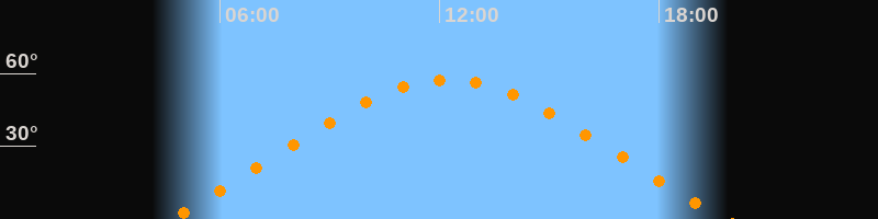 | Höchster Stand (Kulmination) | 12:13 Uhr (h = 57,5°) |