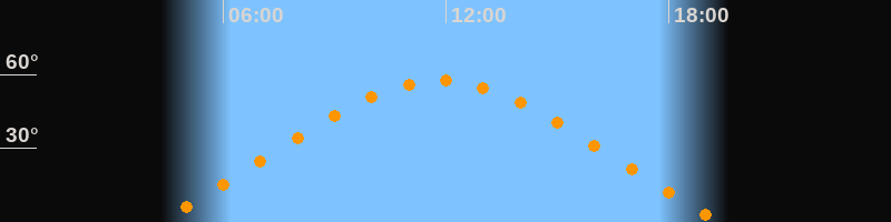 | Höchster Stand (Kulmination) | 11:49 Uhr (h = 57,5°) |