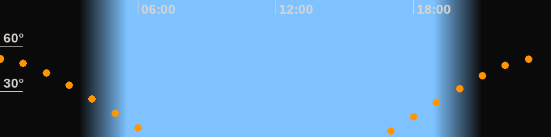 | Aufgang | 16:30 Uhr im Osten (αAz = 69,2°) |