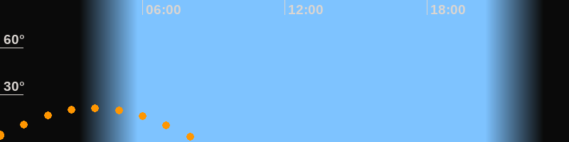 | Untergang | 08:29 Uhr im Südwesten (αAz = 242,4°) |