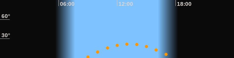 | Höchster Stand (Kulmination) | 13:15 Uhr (h = 21,8°) |