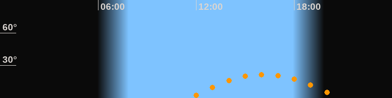 | Aufgang | 11:37 Uhr im Südosten (αAz = 117,6°) |