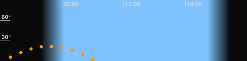 | Untergang | 09:18 Uhr im Südwesten (αAz = 242,4°) |
