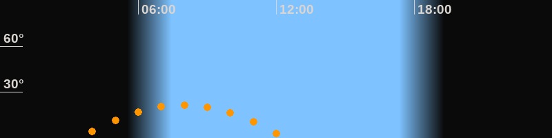 | Höchster Stand (Kulmination) | 07:54 Uhr (h = 21,8°) |