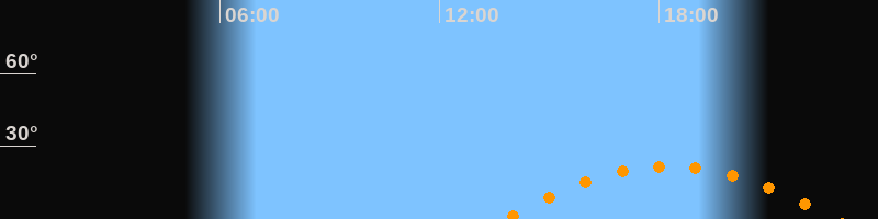 | Höchster Stand (Kulmination) | 18:18 Uhr (h = 21,8°) |