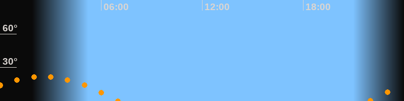 | Aufgang | 21:53 Uhr im Südosten (αAz = 117,6°) |