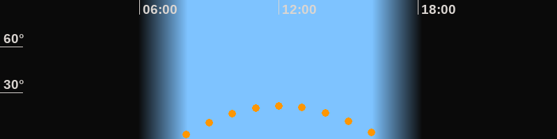 | Höchster Stand (Kulmination) | 12:04 Uhr (h = 21,8°) |