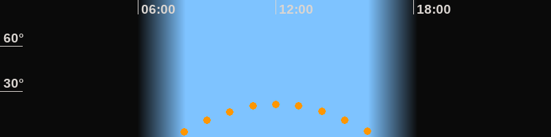 | Höchster Stand (Kulmination) | 12:00 Uhr (h = 21,8°) |