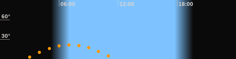 | Aufgang | 02:34 Uhr im Südosten (αAz = 117,6°) |