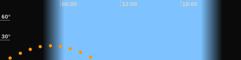 | Untergang | 09:38 Uhr im Südwesten (αAz = 242,4°) |