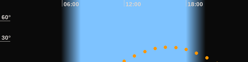 | Aufgang | 11:46 Uhr im Südosten (αAz = 117,6°) |