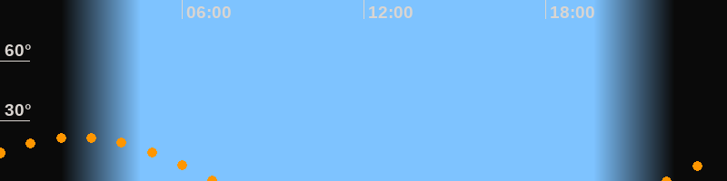 | Untergang | 07:05 Uhr im Südwesten (αAz = 242,4°) |
