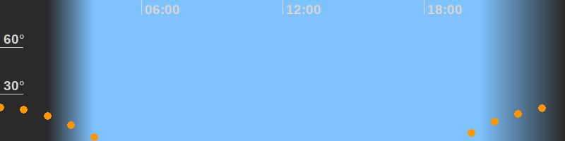 | Untergang | 04:24 Uhr im Südwesten (αAz = 242,4°) |