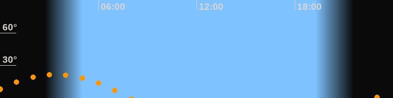 | Aufgang | 22:48 Uhr im Südosten (αAz = 117,6°) |