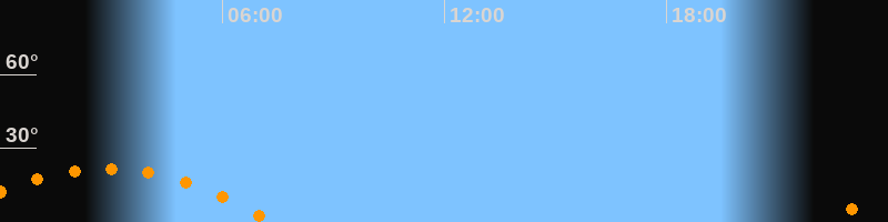 | Aufgang | 22:15 Uhr im Südosten (αAz = 117,6°) |