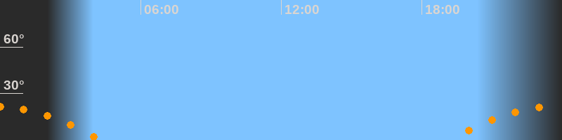 | Untergang | 04:19 Uhr im Südwesten (αAz = 242,4°) |