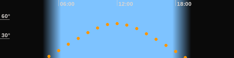 | Höchster Stand (Kulmination) | 11:54 Uhr (h = 53,8°) |