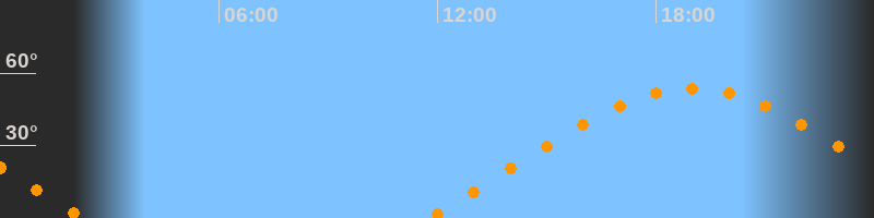 | Aufgang | 11:43 Uhr im Nordosten (αAz = 66°) |