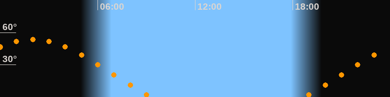 | Untergang | 09:18 Uhr im Nordwesten (αAz = 294°) |