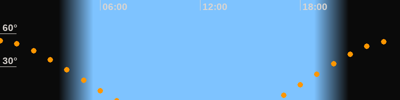 | Untergang | 07:01 Uhr im Nordwesten (αAz = 294°) |