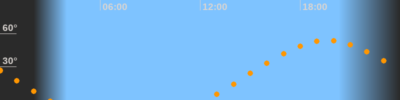 | Aufgang | 12:20 Uhr im Nordosten (αAz = 66°) |