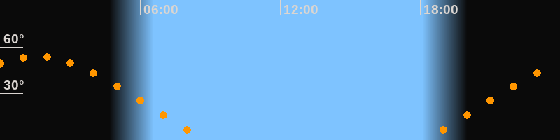 | Aufgang | 18:11 Uhr im Nordosten (αAz = 66°) |