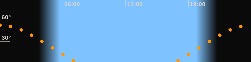 | Untergang | 07:18 Uhr im Nordwesten (αAz = 294°) |