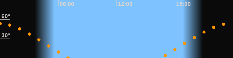 | Untergang | 07:06 Uhr im Nordwesten (αAz = 294°) |