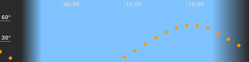| Höchster Stand (Kulmination) | 18:23 Uhr (h = 53,8°) |