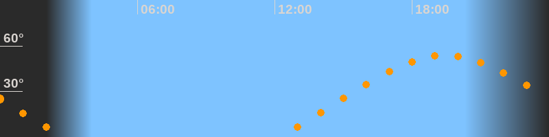 | Aufgang | 12:10 Uhr im Nordosten (αAz = 66°) |