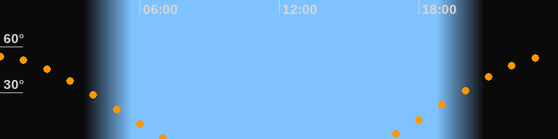 | Untergang | 07:09 Uhr im Nordwesten (αAz = 294°) |
