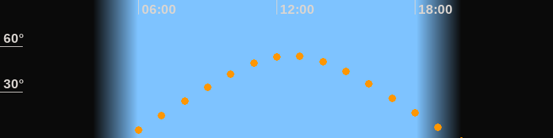 | Höchster Stand (Kulmination) | 12:36 Uhr (h = 53,8°) |