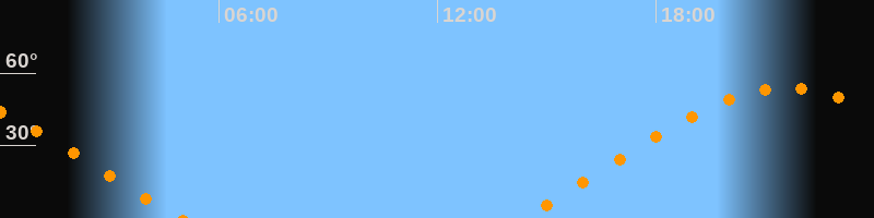 | Aufgang | 14:19 Uhr im Nordosten (αAz = 66°) |