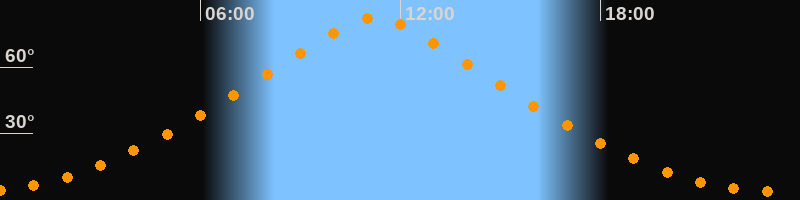 | Höchster Stand (Kulmination) | 11:14 Uhr (h = 82,4°) |