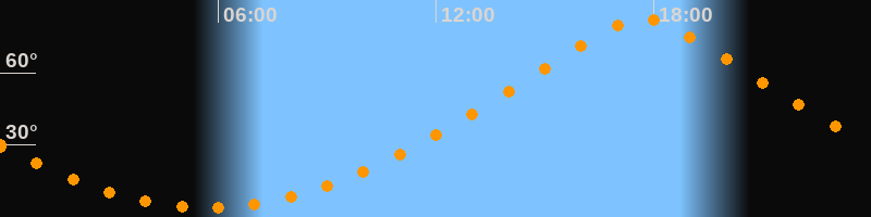 | Höchster Stand (Kulmination) | 17:42 Uhr (h = 82,4°) |