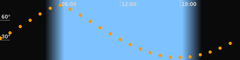 | Höchster Stand (Kulmination) | 05:54 Uhr (h = 82,4°) |