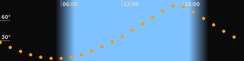 | Höchster Stand (Kulmination) | 17:25 Uhr (h = 82,4°) |