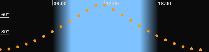 | Höchster Stand (Kulmination) | 11:34 Uhr (h = 82,4°) |