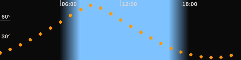 | Höchster Stand (Kulmination) | 09:09 Uhr (h = 82,4°) |