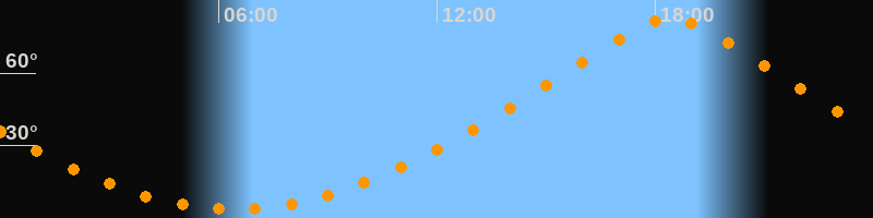 | Höchster Stand (Kulmination) | 18:25 Uhr (h = 82,4°) |