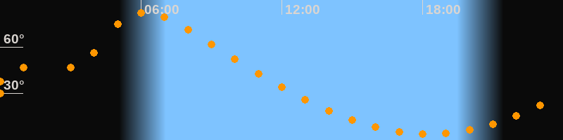 | Höchster Stand (Kulmination) | 06:16 Uhr (h = 82,4°) |